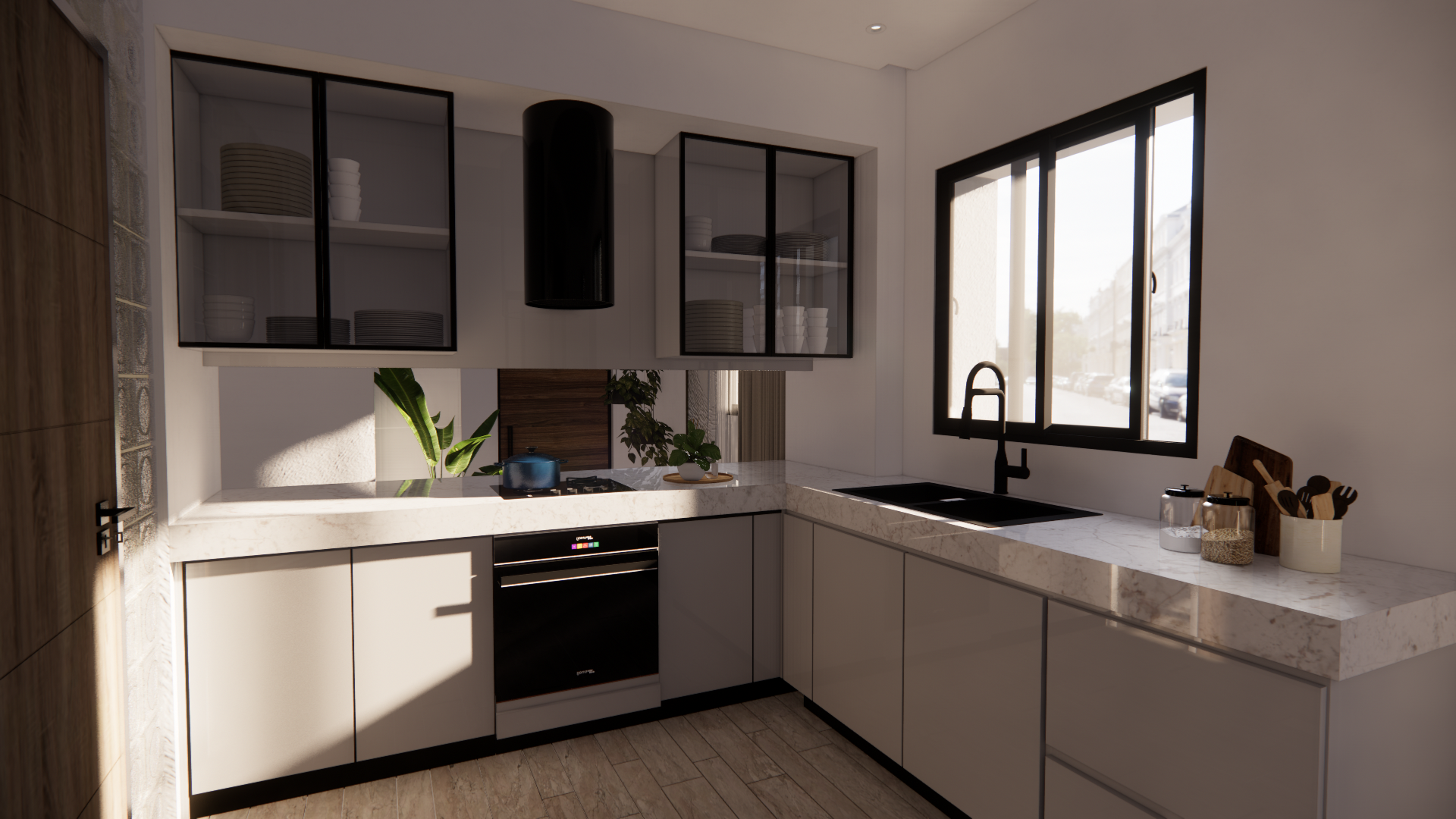Une cuisine contemporaine, mêlant design raffiné et agencement intelligent pour une expérience culinaire d’exception.